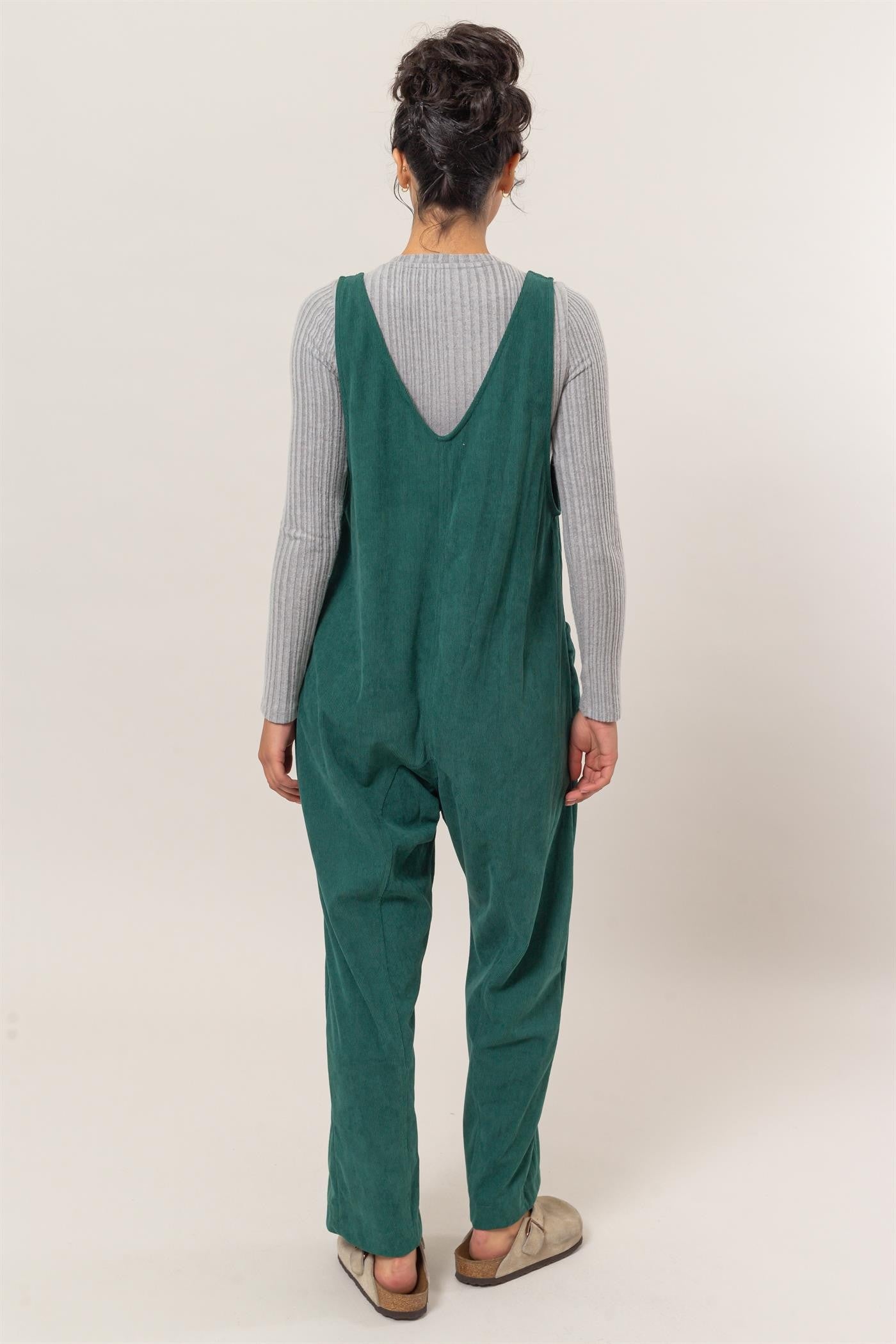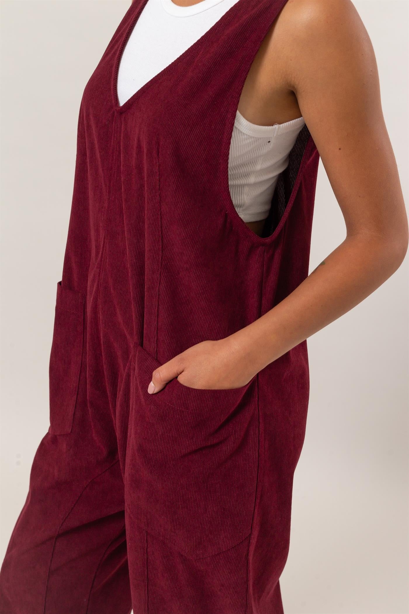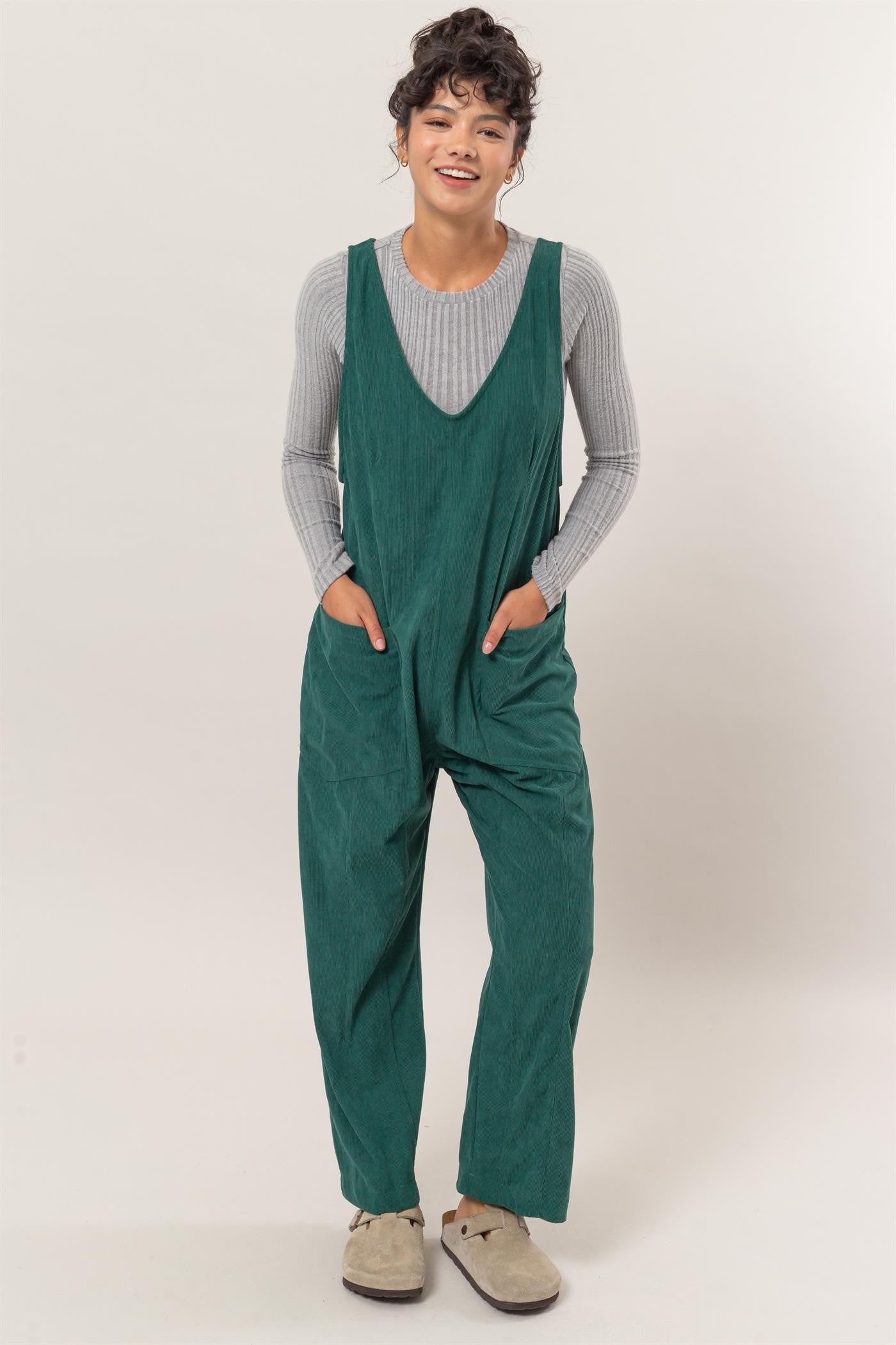 Give Your Everyday Style An Effortless Upgrade With This Jumpsuit. It Is Cut From Corduroy And Features A V-Neck, Wide Shoulder Straps And A Relaxed Fit. Front Patch Pockets Are Perfect To Keep Your Mini Essentials With You. Available in a gorgeous dark green or wine color.
