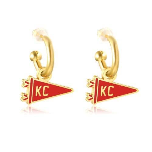 Show off your team spirit with the Kansas City Red & Gold Pennant Huggie Hoop earrings. These cute and fun gold hoops feature vibrant red and gold accents, making them the perfect accessory for football season. Lightweight and stylish, they add a festive touch to any outfit while keeping you comfortable all day long. Celebrate every game with earrings that bring energy and pride to your look.
