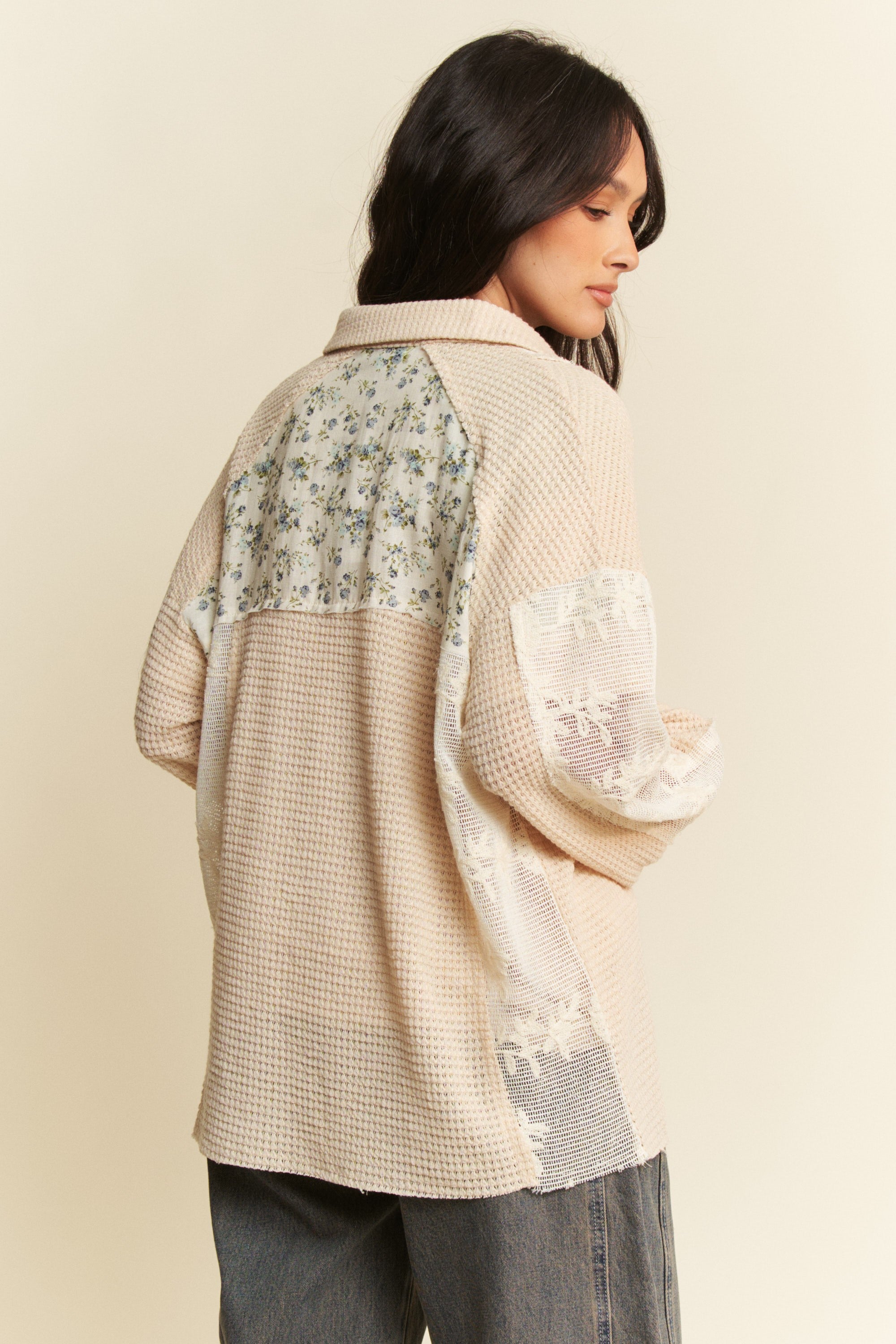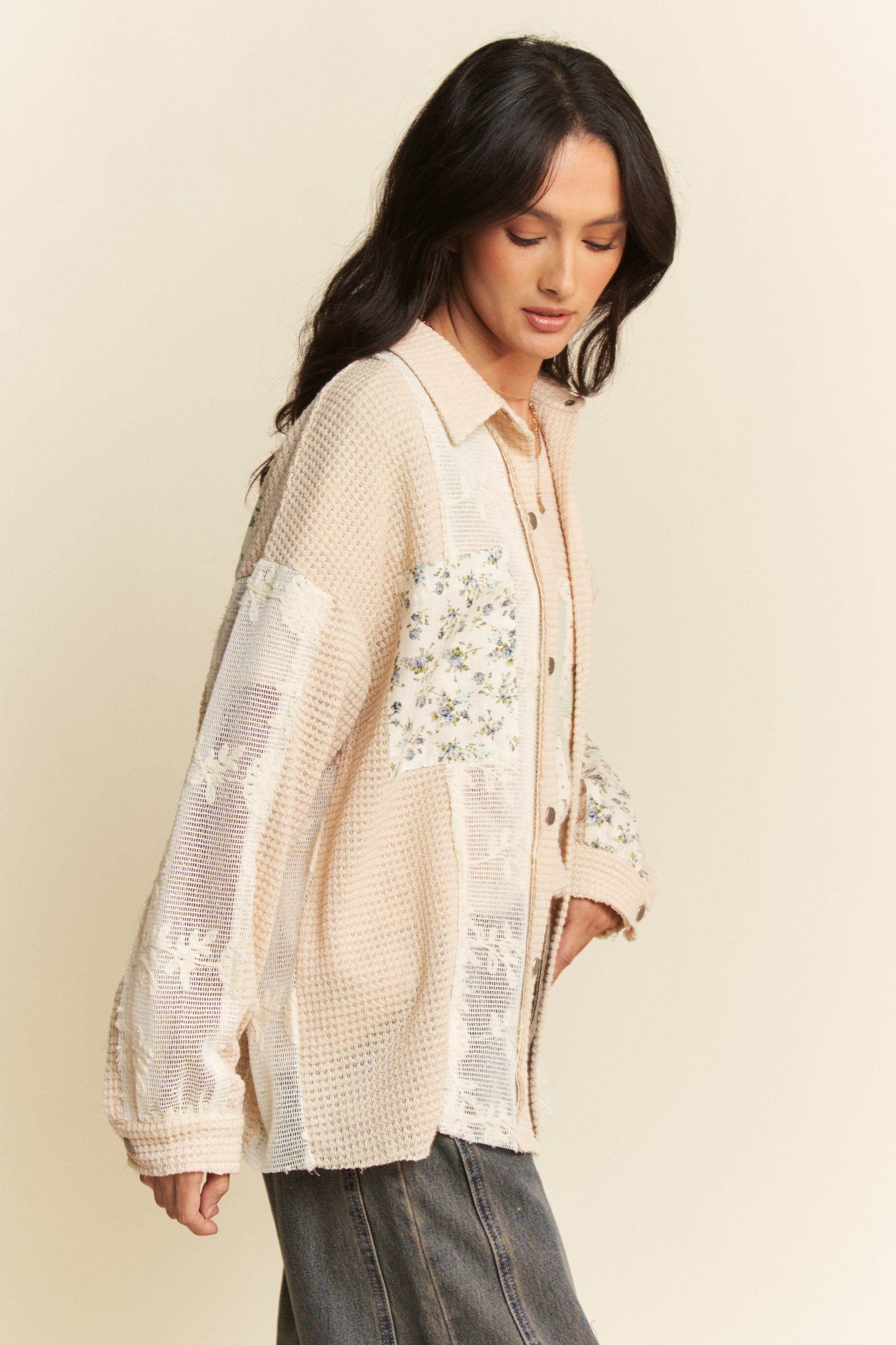 Wrap yourself in cozy charm with the Daisy Shacket, a playful blend of thermal warmth and delicate lace. Featuring a whimsical floral print, this knit shacket adds a fun, feminine touch to your layering game while keeping you comfortably snug.