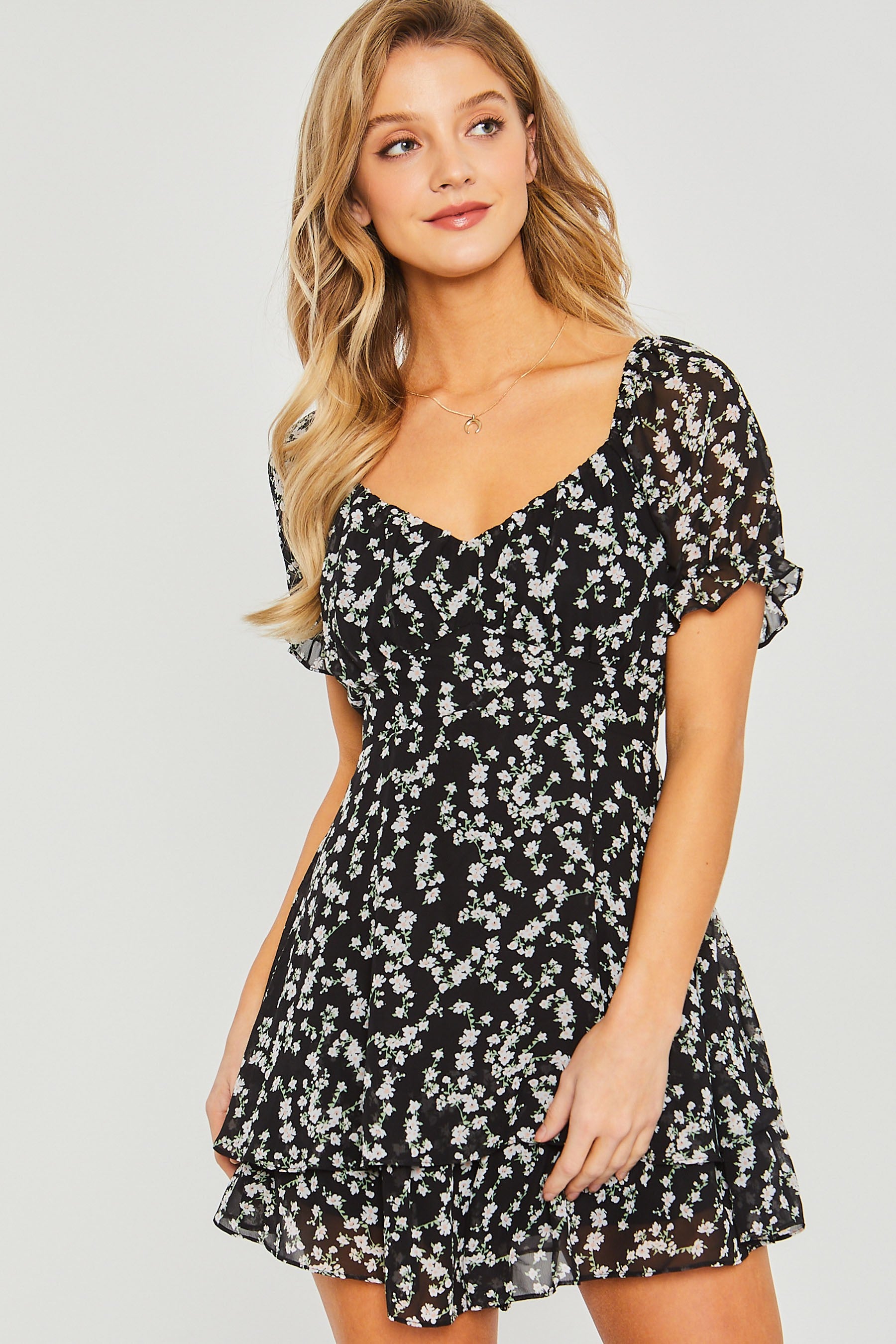 Experience ultimate comfort and style with our pretty little thing romper - perfect for any fun and flirty occasion. It is tiered with a tie in the back. This romper looks like a dress. Perfect for weddings, wineries or a night out.
