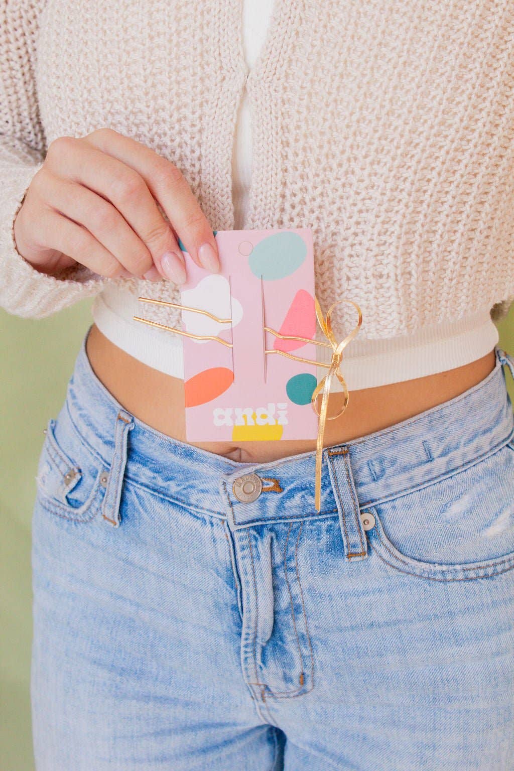 Hair Pins are the next claw clips! They are such a simple and beautiful tool that will easily hold your hair in so many different ways. Andi’s hairpins match any vibe, any outfit, and any occasion. This pin features a gorgeous herringbone chain bow, attached to a thin gold, U-shape pin. It will look stunning in your hair and be so comfortable, you'll forget it's even there.